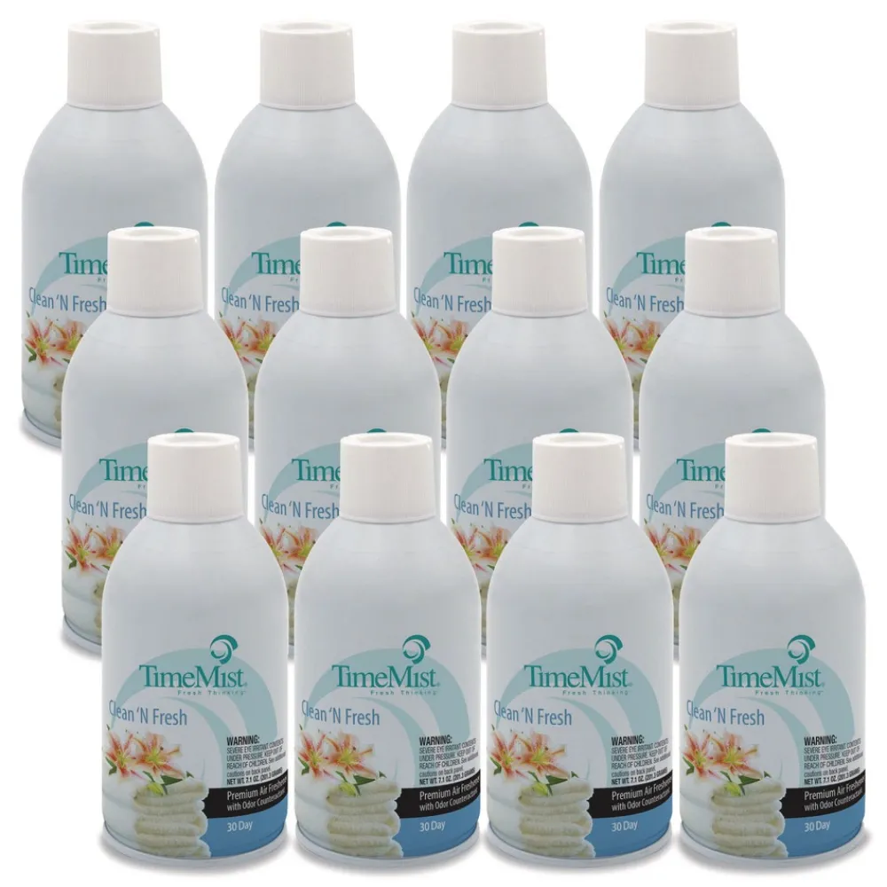 TimeMist 1042771 6.6 oz. Aerosol Spray Premium Metered Air Freshener Refill – Clean N Fresh (12/Carton)