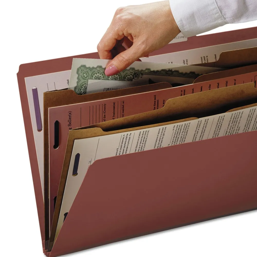Minimize the time you spend searching for documents and increase the efficiency of your filing system. Smead’s Pressboard Classification File Folders with Pocket-Style Dividers and SafeSHIELD Fasteners make it easy to organize your critical information by providing multiple filing surfaces that can be used to separate your documents in subcategories and keep them in proper sequence. Purposefully designed to provide a solution for the most common fastener issues, our Pressboard Classification File Folders feature SafeSHIELD Coated Fasteners that help you avoid hand injuries, ripped papers and excessive fastener crinkling. The 2/5-cut tab in right of center position is compatible with our Viewables Multipurpose Labels (sold separately) and the 2 in. expanding spine made of tear-resistant material offers greater storage capacity for bulky projects.