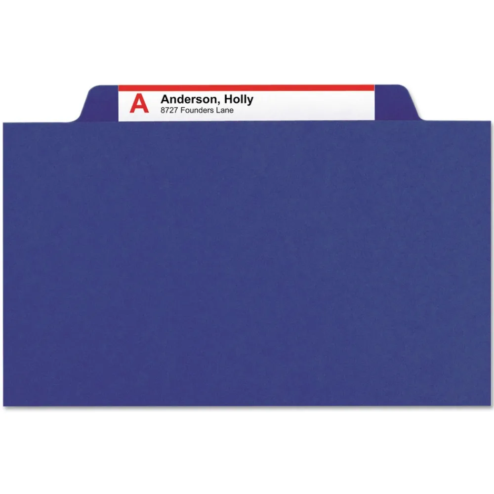 Minimize the time you spend searching for documents and increase the efficiency of your filing system. Smead’s Pressboard Classification File Folders with Pocket-Style Dividers and SafeSHIELD Fasteners make it easy to organize your critical information by providing multiple filing surfaces that can be used to separate your documents in subcategories and keep them in proper sequence. Purposefully designed to provide a solution for the most common fastener issues, our Pressboard Classification File Folders feature SafeSHIELD Coated Fasteners that help you avoid hand injuries, ripped papers and excessive fastener crinkling. The 2/5-cut tab in right of center position is compatible with our Viewables Multipurpose Labels (sold separately) and the 2 in. expanding spine made of tear-resistant material offers greater storage capacity for bulky projects.
