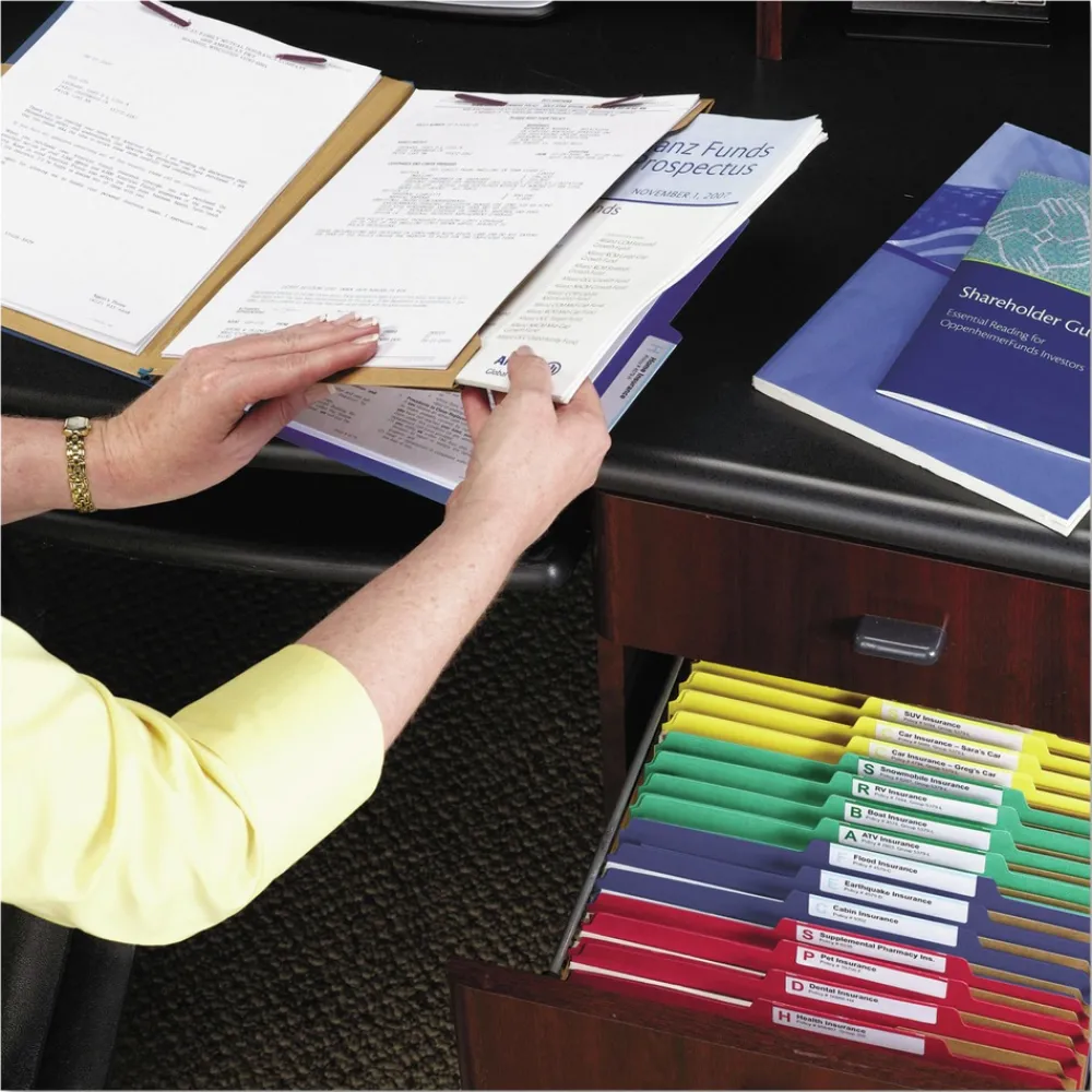A 2/5-cut tab in right of center position makes them perfect to use with drawer filing systems for easier and faster filing; Compatible with Viewables Multipurpose Labels (64915), sold separately