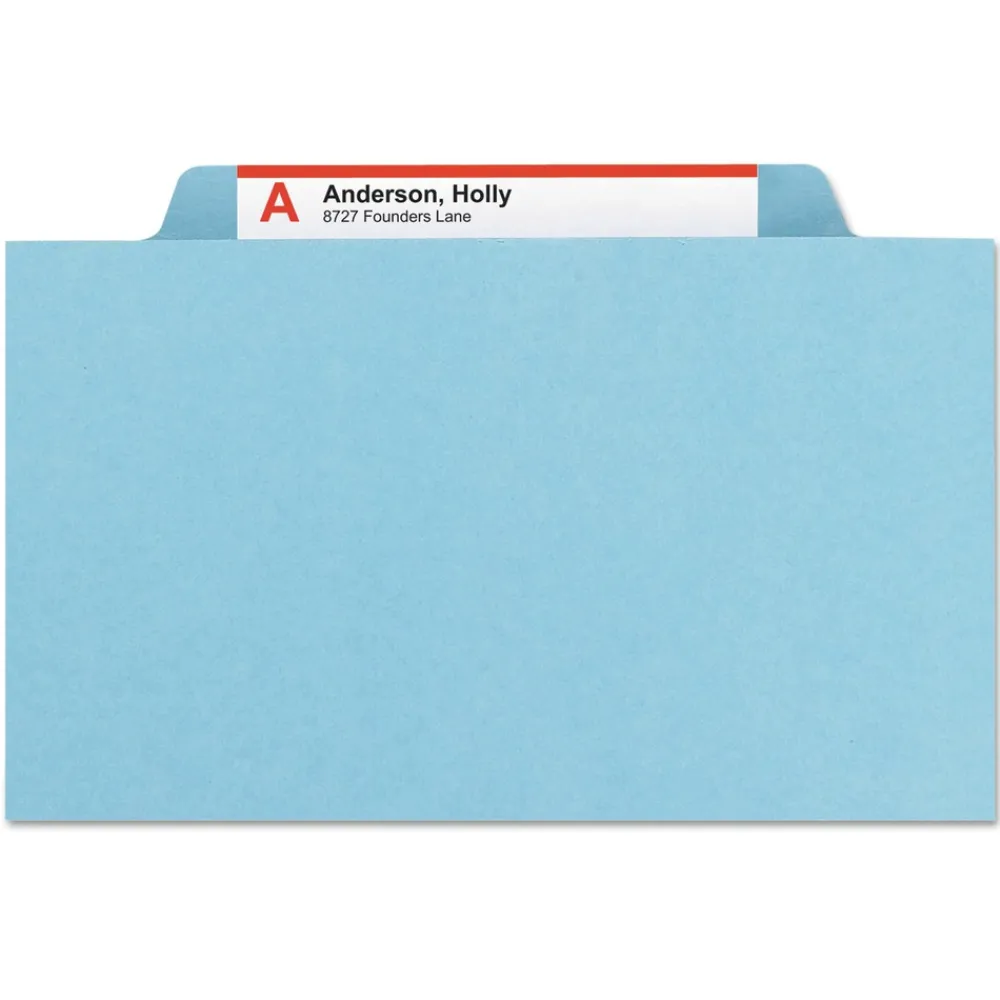 Smead 14030 6-Section Pressboard Top Tab Classification Folders with 6 SafeSHIELD Fasteners – Letter Size/Blue (10/Box)