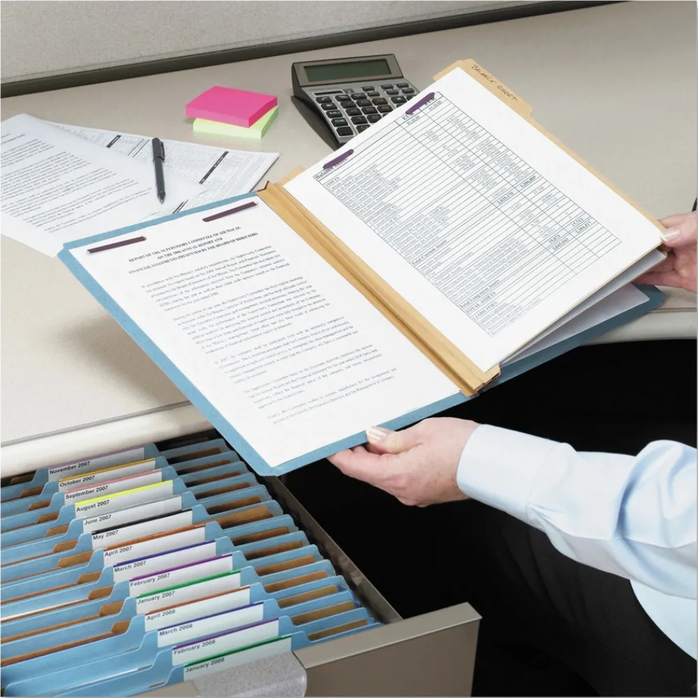 Protect your documents and fingers with Smead patented SafeSHIELD Coated Fastener Technology; the ultimate solution to fastener issues, including paper tears, finger cuts and excessive fastener crinkling. Use colors to signal category or type of project at a glance. Sturdy tear resistant gusset expands to hold up to 2 in. of material. Two dividers provide six filing surfaces for ultimate organization.