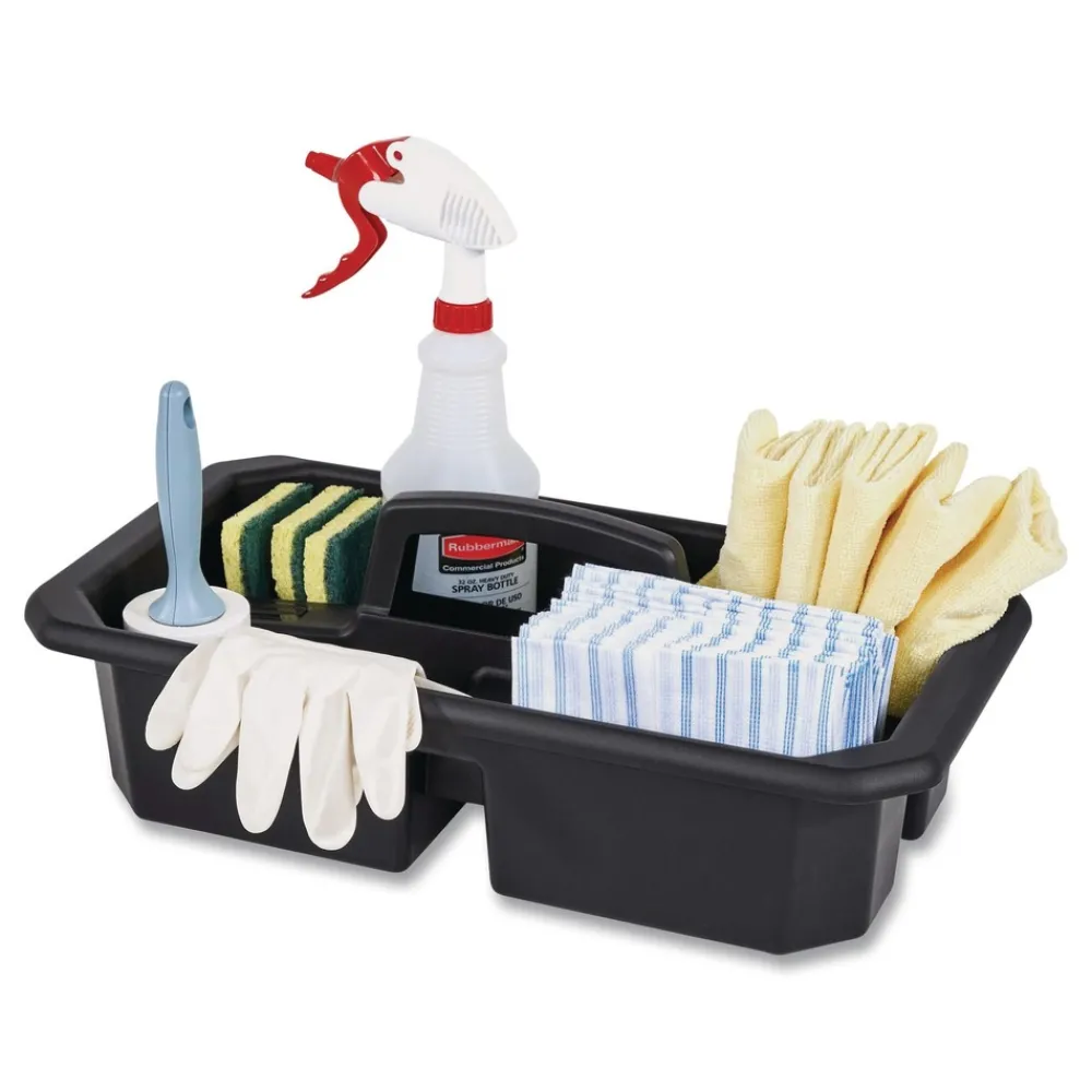 Rubbermaid Commerical Products Cleaning Caddy is an all-purpose caddy designed for easily carrying cleaning supplies or tools. Stock the caddy with essential cleaning solutions to streamline your workflow and boost productivity.