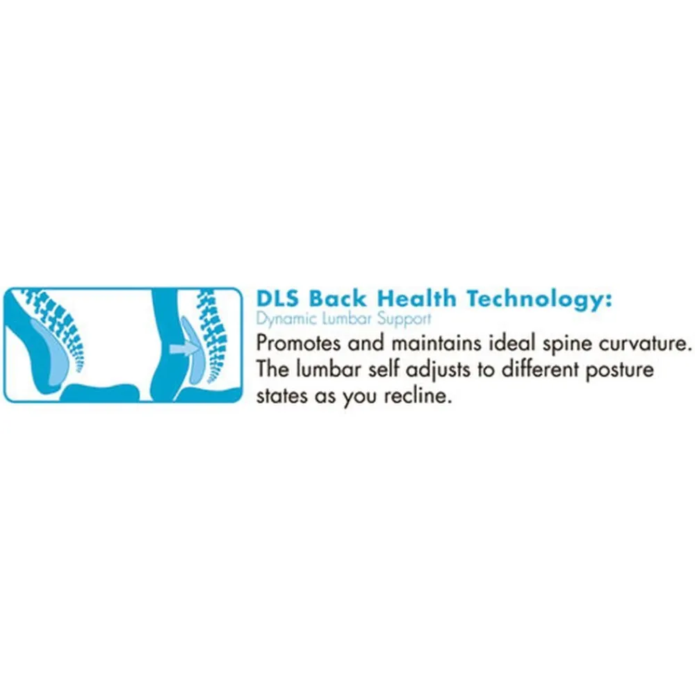 Dynamic Lumbar Support, DLS, promotes and maintains ideal spine curvature