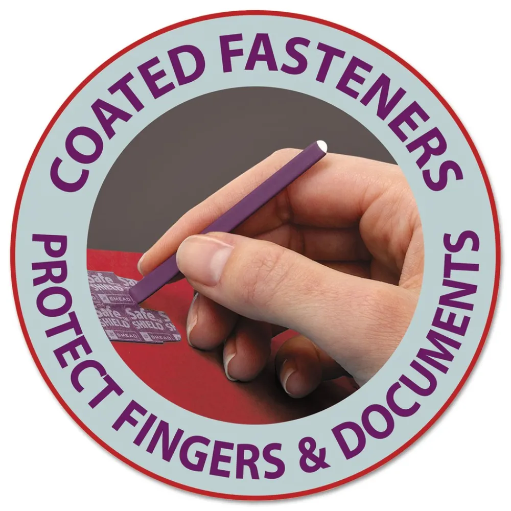 Patented SafeSHIELD® coated fasteners help prevent finger cuts, eliminate paper tears and reduce excessive fastener crinkling.