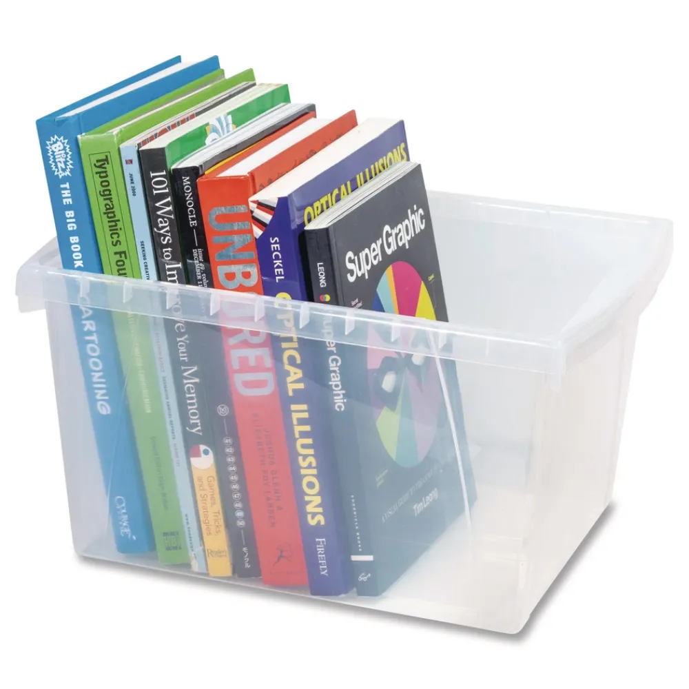 The ultimate companion for your bookshelf or cubby. The easy to grip handles are perfectly sized for big and small hands. Made of impact-resistant plastic. Use them to organize your room and store all your supplies.