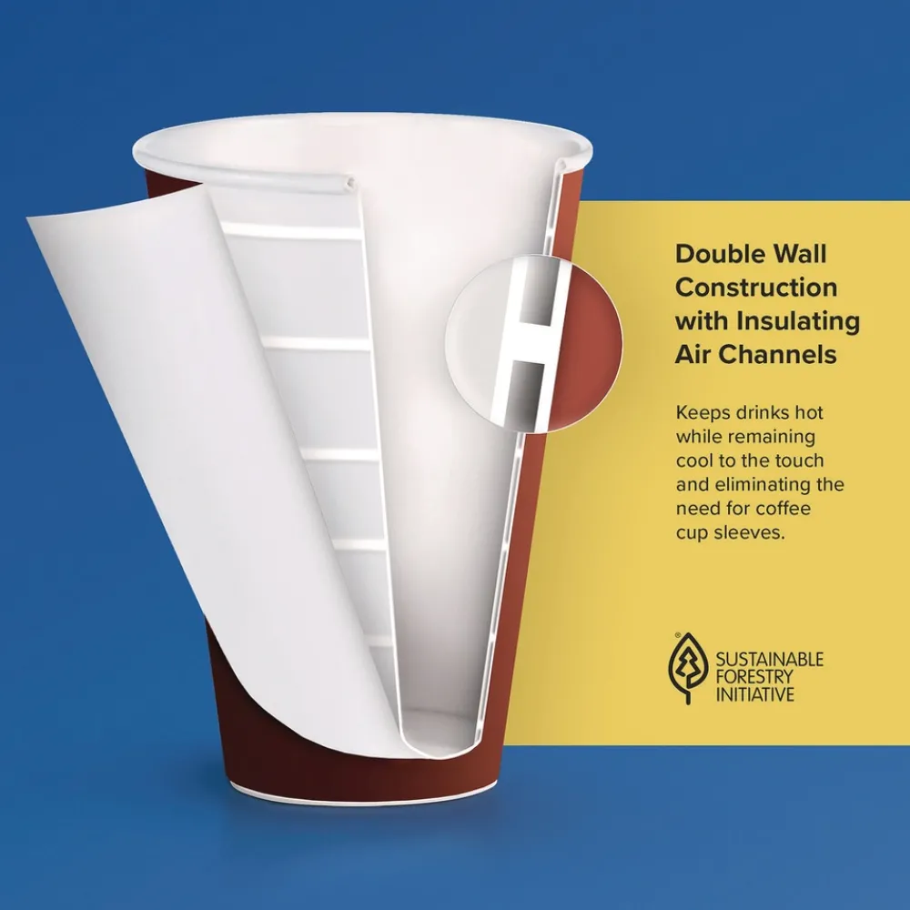 The moisture-blocking poly lining protects against leaky seams and soak-through. Save money by reducing the need for sleeves or double cupping. The double-wall construction combined with insulating air channels keeps the heat inside and the cup cool to the touch. Coffee, tea and hot chocolate maintain warmth while on the go! Whether you’re in the foodservice industry, managing an office or planning an event, we have a beverage serving solution you can count on. Compatible lids are sold separately.