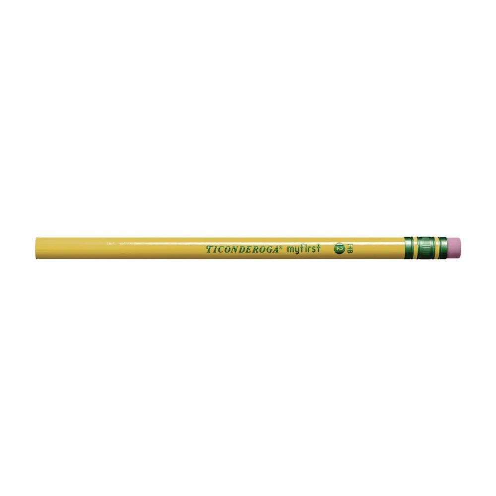 Dixon X13308 Ticonderoga Beginners HB (No. 2) Woodcase Pencil with Eraser and Microban Protection – Black Lead/Yellow Barrel (1-Dozen)