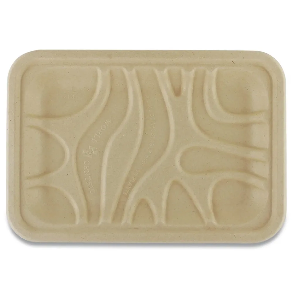 World Centric TRSC2SLLF 8.2 in. x 5.7 in. x 0.7 in. PLA Lined PFAS-Free Paper Fiber Trays – Natural (500/Carton)