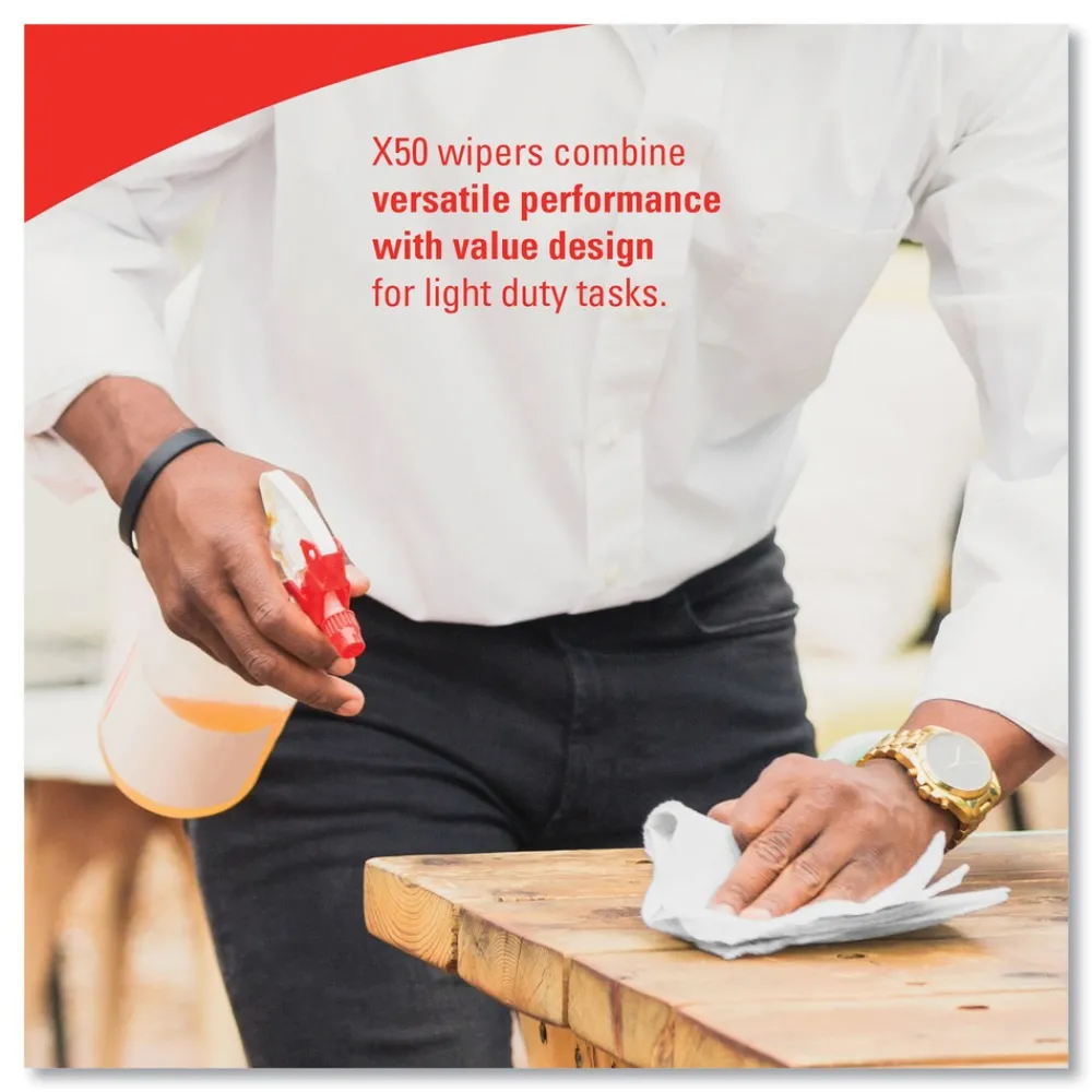 WypAll X50 Reusable Wipes are an excellent choice for economy and function. X50s are the WypAll Brand’s most economical extended use wiper, combining versatile performance with value design for light duty tasks. They feature HydroKnit technology, which gives them strength and durability, so they are a great choice for the manufacturing, industrial, commercial, automotive and transportation industries. If you need durable wiping capabilities at a value price, WypAll X50 Reusable Wipes are a smart choice.