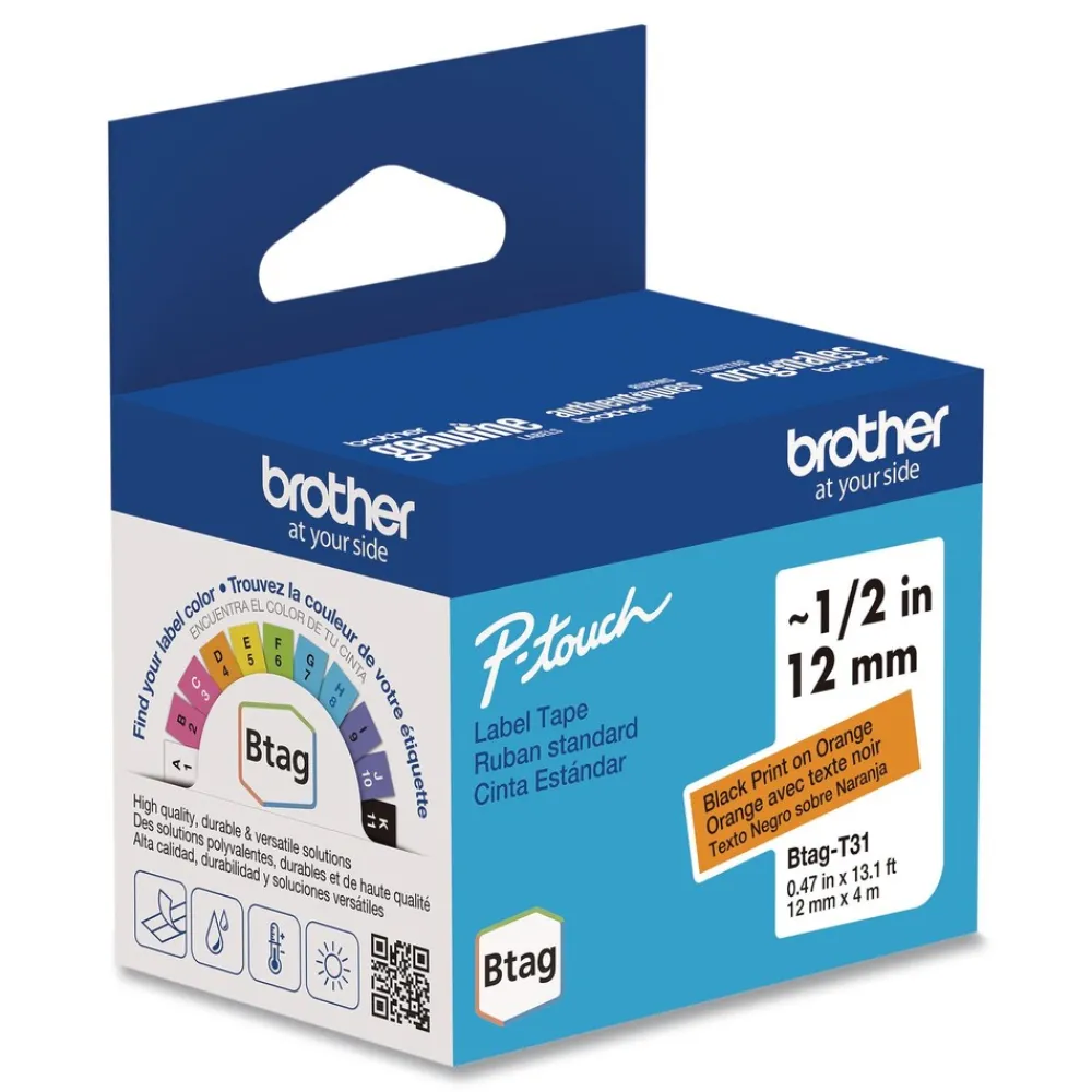 Brother P-Touch BTAGT31 0.47 in. x 13.1 ft. Genuine P-Touch BTAG Label Tapes – Black on Orange