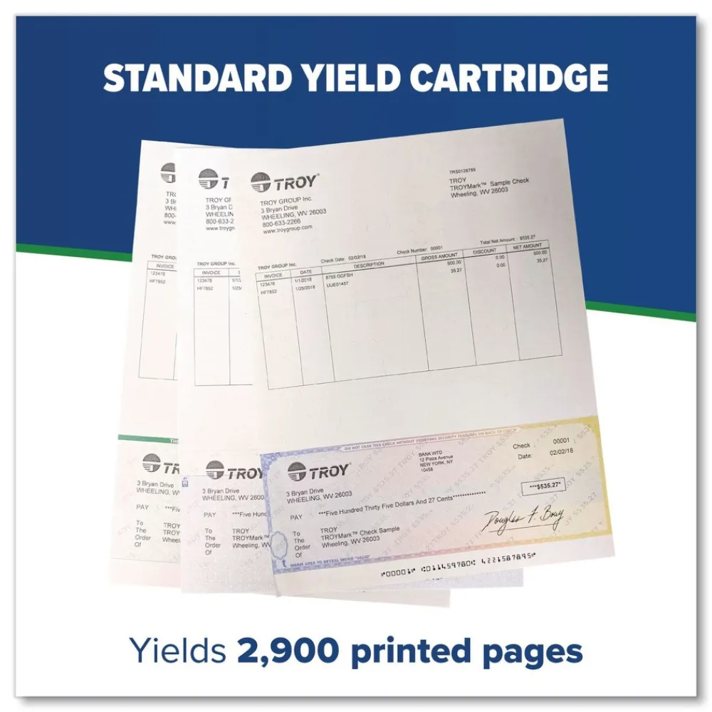 Printed checks using TROY MICR Toner Secure results in high readability and legibility that not only meets but exceeds all ANSI and ABA banking standards.