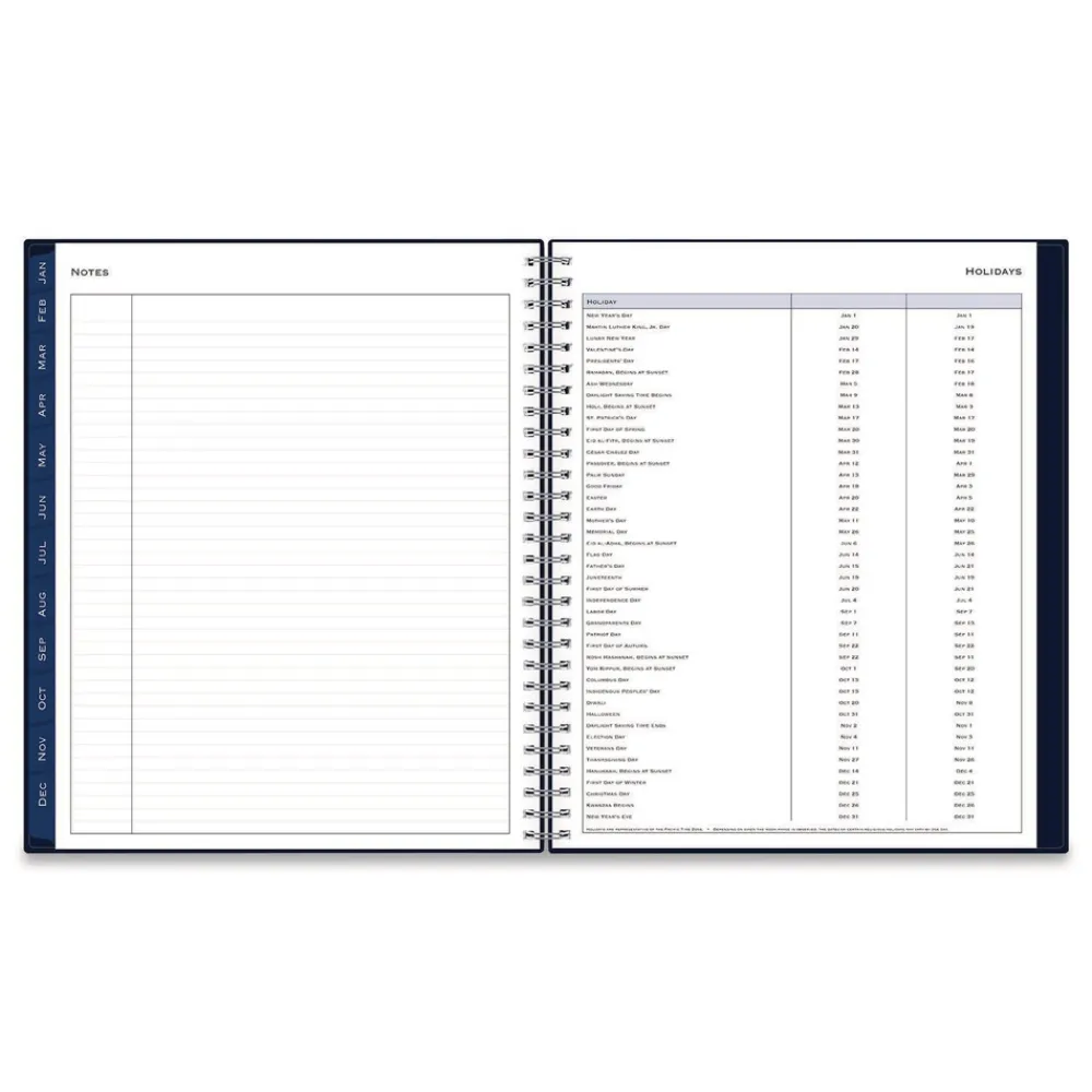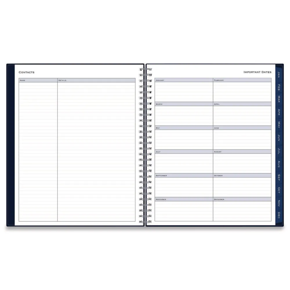 Add sophisticated appeal to your planning tasks with the sleek and professional Passages Monthly Planner. Durable, tear-resistant monthly tabs allow for easy access to your monthly views, while the two-page layouts offer plenty of writing space for detailed planning. Six untabbed, past-year monthly spreads help you transition into the new year, and a handy interior storage pocket allows you to carry along important loose documents. Durable covers and polished metal twin-wire binding enhance and preserve the book’s elegant appearance. Thick, premium-quality, acid-free paper reduces the potential for ink bleed through.