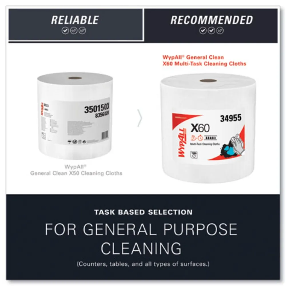 WypAll 34955 12.2 in. x 12.4 in. General Clean Jumbo Roll X60 Cloths – White (1/Carton)