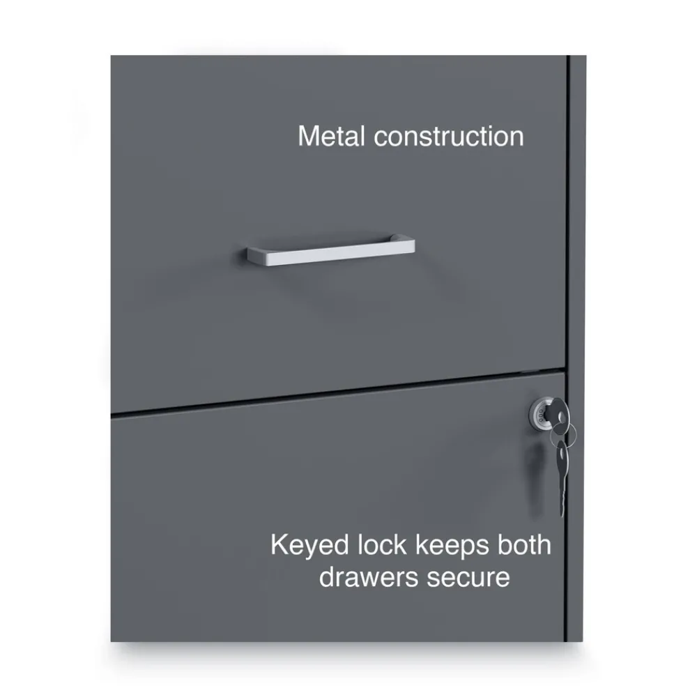 Organize your home or professional workspace with the 2-Drawer vertical file cabinet. Keep all your letter-sized documents secure and tucked away in two 18 in.depth drawers. This file cabinet comes equipped with one factory installed lock and key, controlling both drawers for peace of mind and security. The sleek finish and polished handles keep your office space looking contemporary and organized.