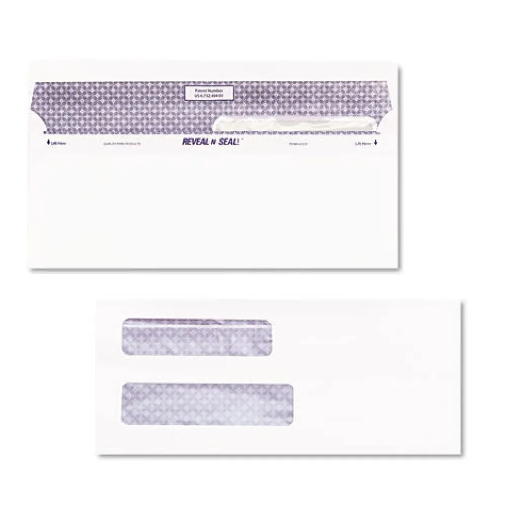 Single window security tinted envelope with Reveal-N-Seal self seal closure is the ultimate in convenience and security. Self seal closure alleviates the need to moisten flaps and to throw away pull-off strips. Simply fold bottom flap up and press for a secure seal, Window conveniently accommodates the printed address eliminating hand addressing. Perforated lines along flap show evidence if tampering is attempted. The innovative design preserves the adhesive and lengthens shelf life until use. Send out your business correspondence with assurance of quality and security. Count on Quality Park to offer premium products for all your business needs.