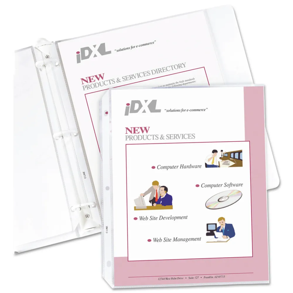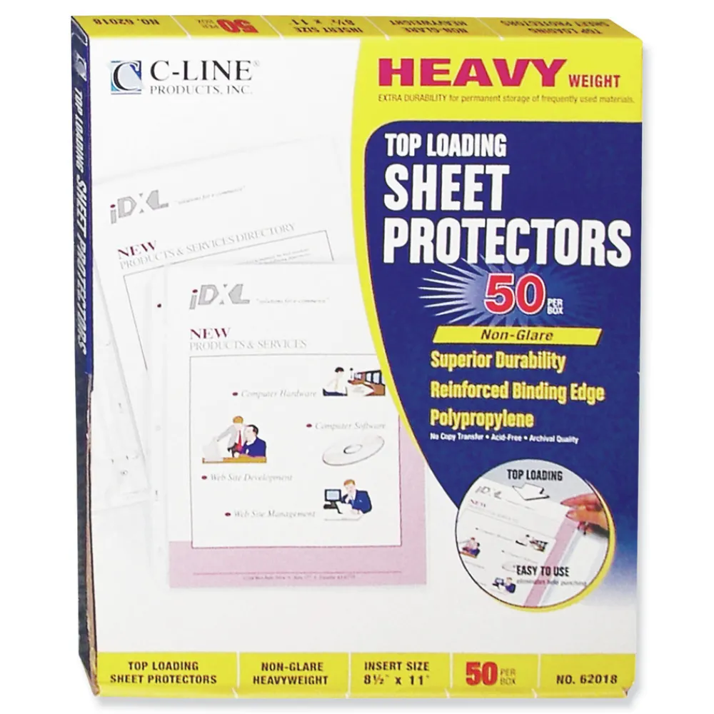 C-Line 62018 3-Hole Punched Top Load 8.5 in. x 11 in. Insert Heavy-Duty Polypropylene Sheet Protectors – Nonglare Clear Front (50/Box)