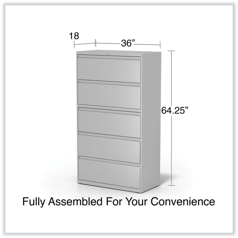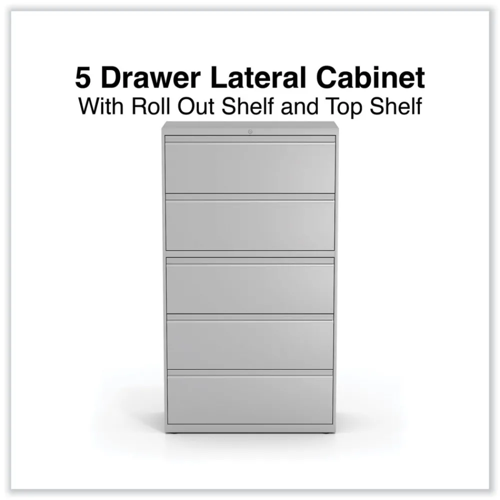 Alera 25498 36 in. x 18.63 in. x 67.63 in. 5 Lateral File Drawer – Legal/Letter/A4/A5 Size – Light Gray