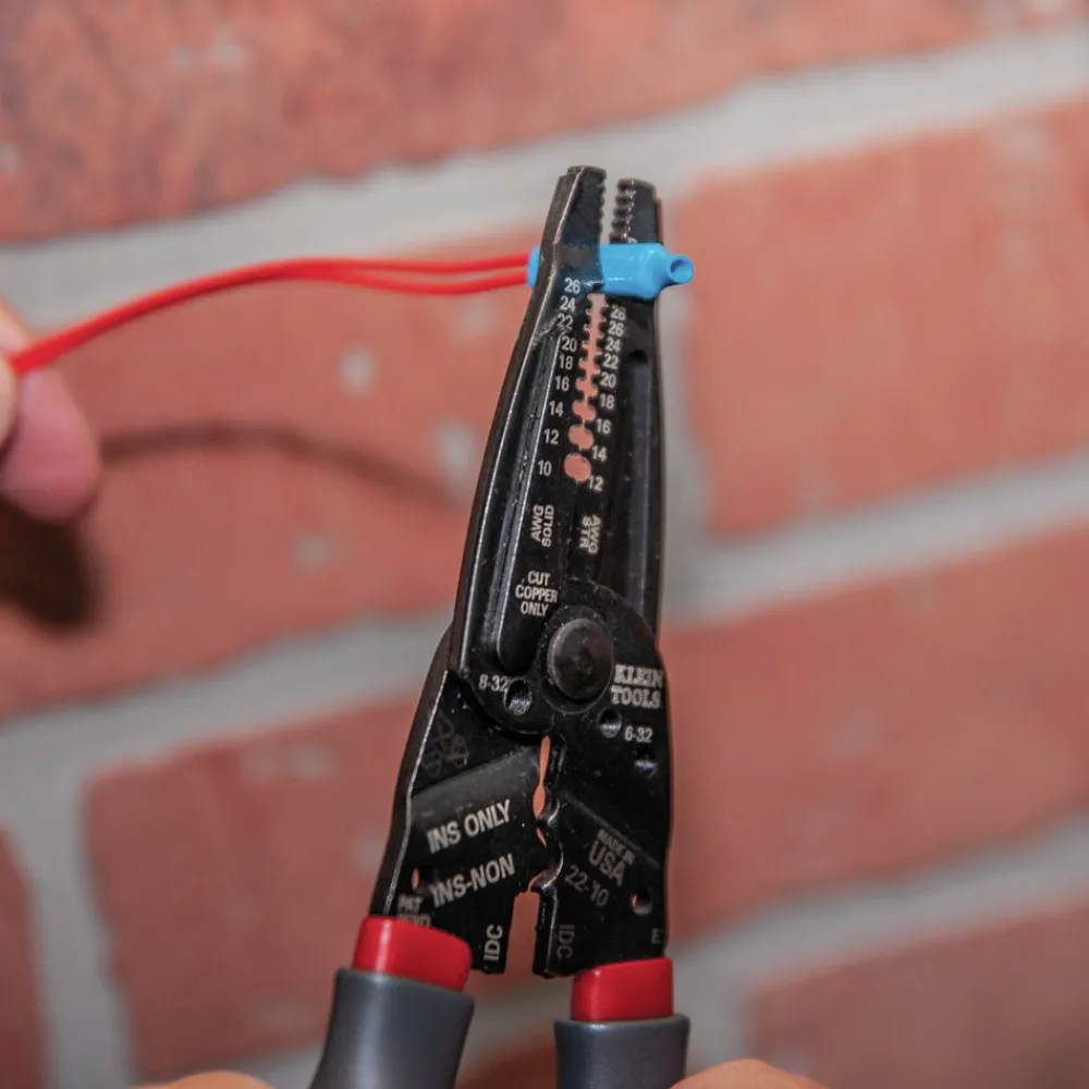 With Klein Tools’ Wire Stripper / Crimper / Cutter Multi Tool, you can strip, cut, twist, shear and crimp with one tool. Features four dedicated crimpers for B connectors, insulated and non-insulated terminals plus Scotchlok IDC connectors. This versatile tool twists, loops and strips 10-26 AWG solid and 12-28 AWG stranded wires and cleanly shears 6-32 and 8-32 screws. The reinforced head reduces flex keeping stripping holes sharp. The design is optimized for ideal leverage when stripping and crimping.