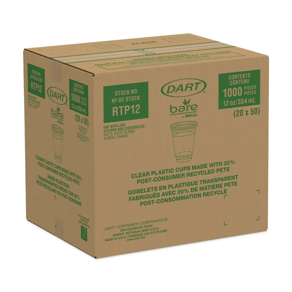 Dart RTP12BARE Bare Eco-Forward 12 oz to 14 oz RPET Cold Cups (1000/Carton)
