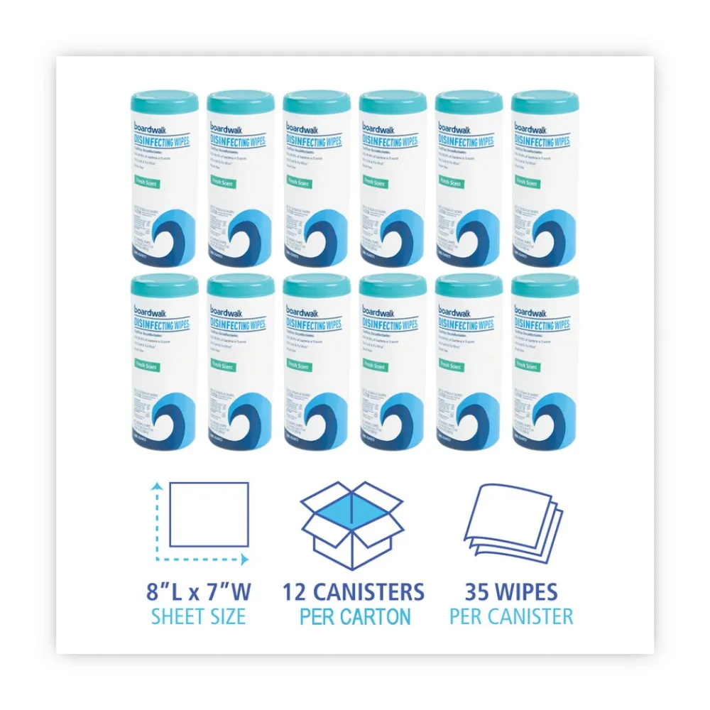 Boardwalk BWK454W35 7 in. x 8 in. Disinfecting Wipes – Fresh Scent (12 Canisters/Carton)