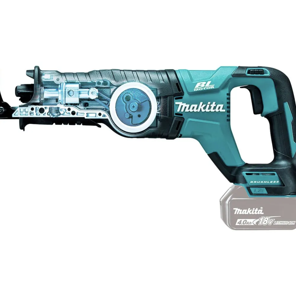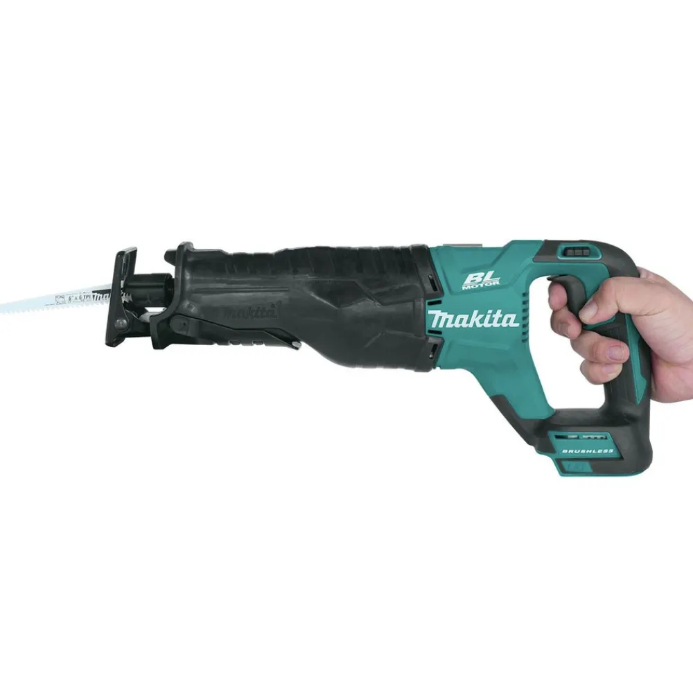 Makita, a pioneer in brushless motor technology and battery innovation, combines both in the 18V LXT Lithium-Ion Brushless Recipro Saw (tool only). It has an electronically-controlled BL Brushless motor that matches torque and RPM to the application, and is powered by the industry’s fastest charging 18V lithium-ion batteries (sold separately). With Makita, users can remain in one battery platform, using the same fast-charging 18V batteries on the XRJ05Z as they use across the Makita 18V LXT cordless tool line-up