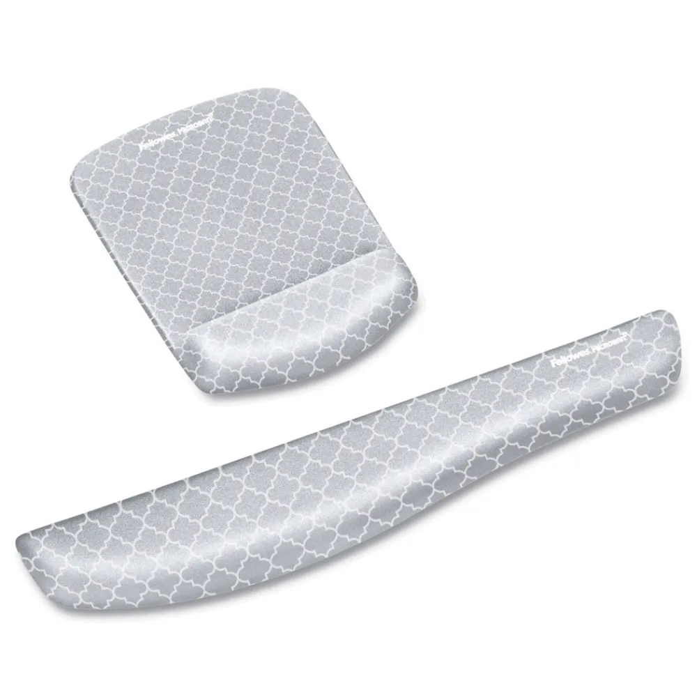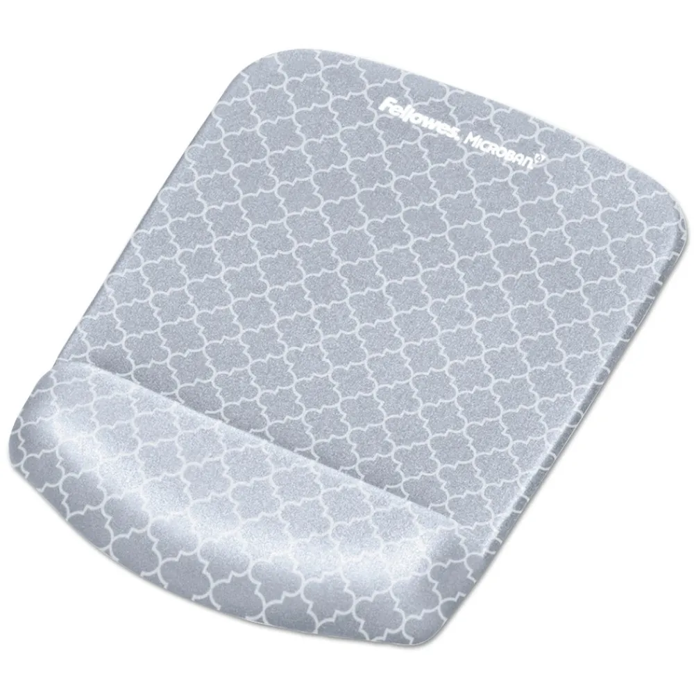 Keep your wrist aligned and express your style with this modern mouse pad with wrist support. The Fellowes PlushTouch ergonomic 9549701 mouse pad with wrist rest in gray lattice uses innovative FoamFusion technology to provide superior comfort and softness to help in relieving wrist pressure. MICROBAN antimicrobial product protection keeps your product cleaner and soft breathable material withstands daily wear and tear.