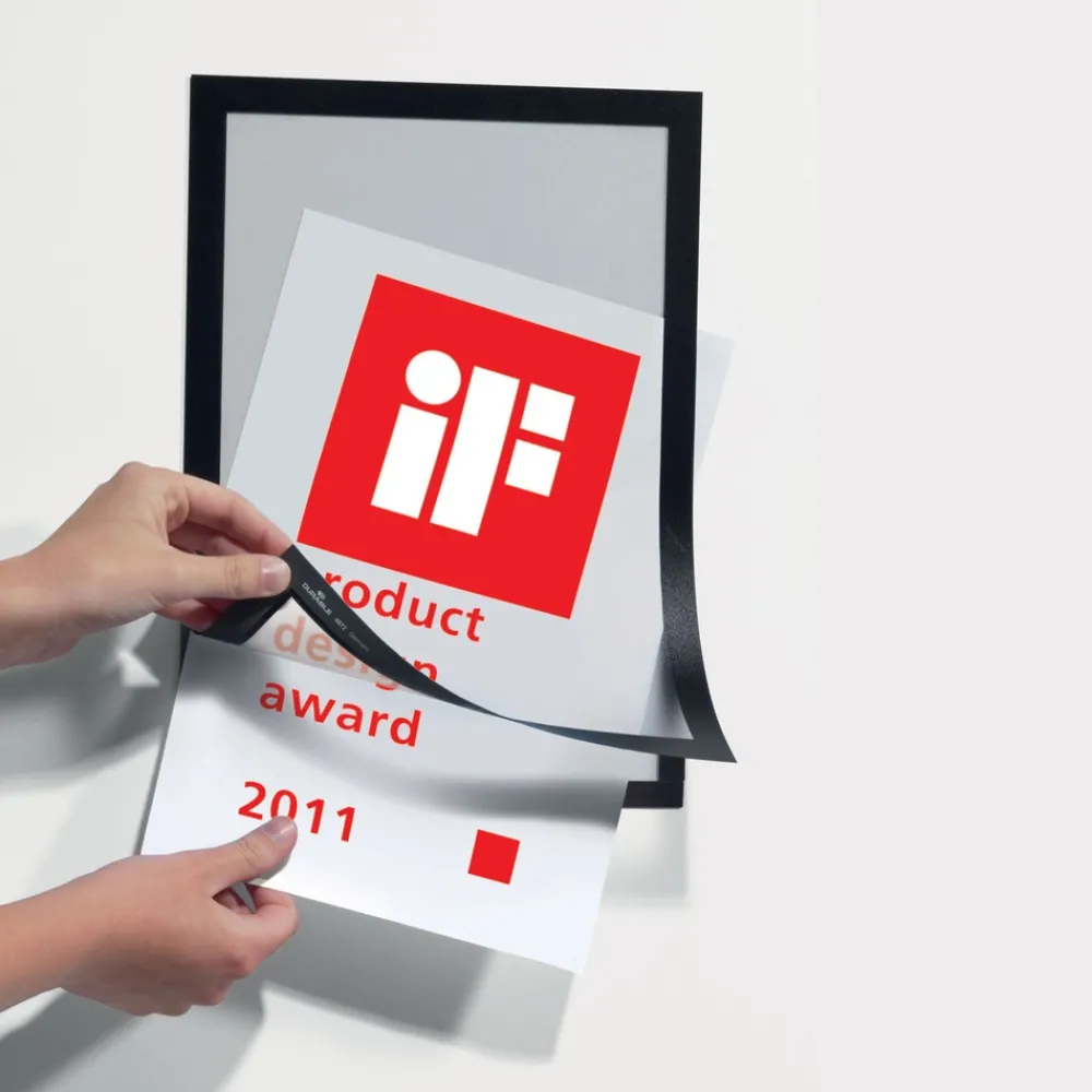 Display large documents, posters, or signs with ease with the Duraframe Magnetic sign holder. It displays documents on metallic surfaces in production area and offices. Easily stick it to magnetic surfaces like whiteboards, metal cabinets, racking and machinery.