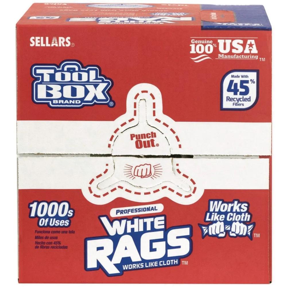 Tackle any job, anywhere, with TOOLBOX White Rags. From paint splatters to greasy spills, these super-absorbent wipes are the ideal solution for hundreds of applications in and around your home or business.