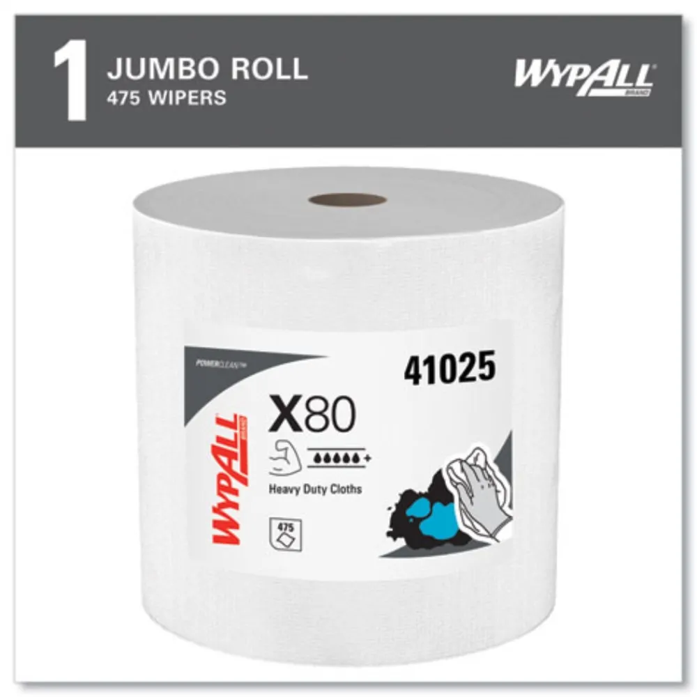 WypAll 41025 12.4 in. x 12.2 in. Power Clean Jumbo Roll X80 Heavy Duty Cloths – White (475/Roll)