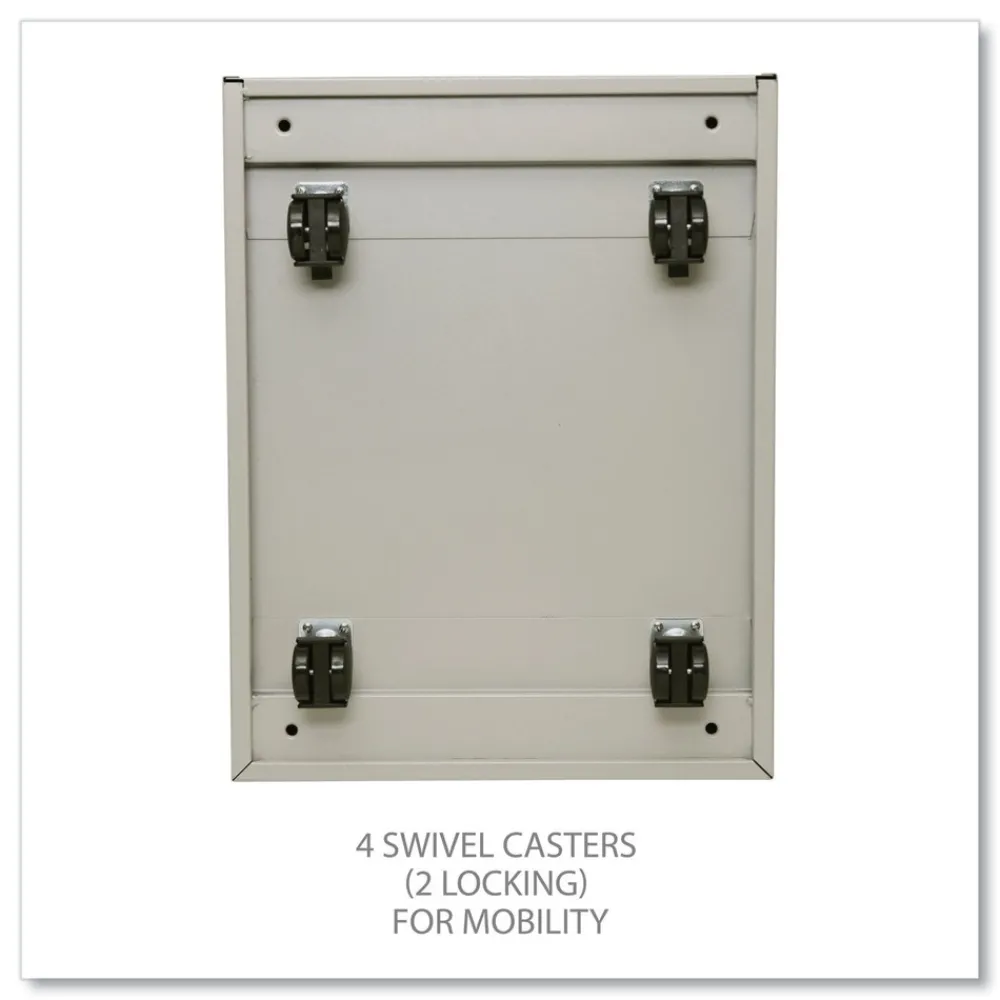 Get organized with a high-sided file cabinet with drawers that accommodate letter or legal-sized hanging files. Steel ball bearing telescoping slide suspension helps drawers glide smoothly and with ease. The counterweight prevents tipping. Equipped with 4 casters, 2 locking, 2 non-locking. Full-length pull permits easy opening. Single key core removable lock with 2 keys. Durable powder coated finish helps prevent scratches.