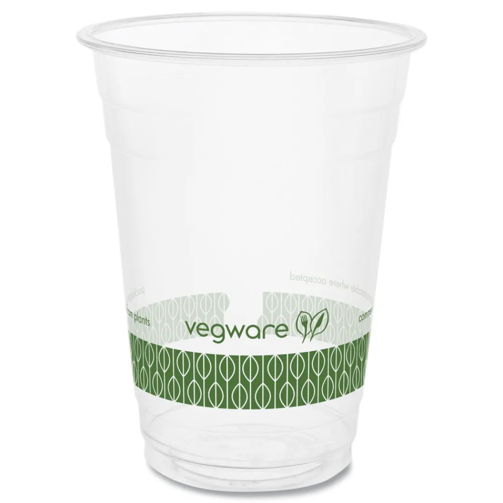 Vegware R500Y-G 16 oz. 96-Series Compostable Cold Cup – Clear/Green (1000/Carton)