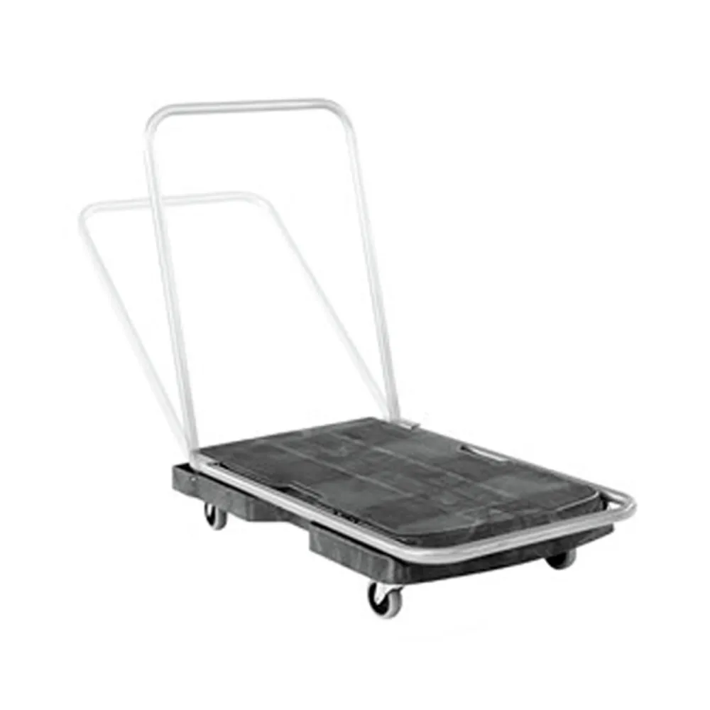 Efficiently transports large bulky loads and then folds flat for easy storage. Sturdy structural foam deck won’t rust, dent, chip or peel. Non-skid platform surface helps prevent load shifting. Tough plastic construction is easy on walls and doors. Three position straight handle lets users push, pull or fold flat for use as a dolly. Casters are non-marking.