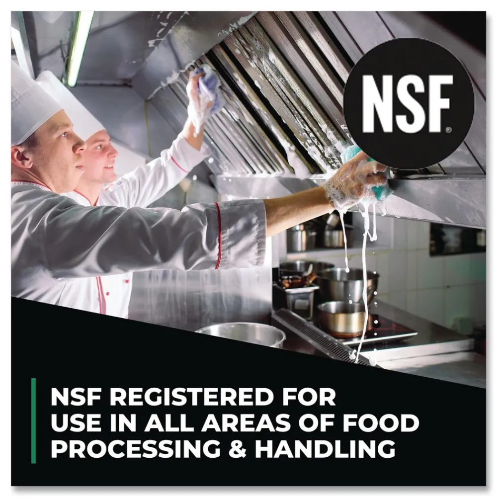 NSF registered A1, A2, A4, A8, B1, C1 for use as a general cleaner in all food processing facility areas including cooking and smoking equipment, appliances, floors, counters, walls, stoves and range hoods