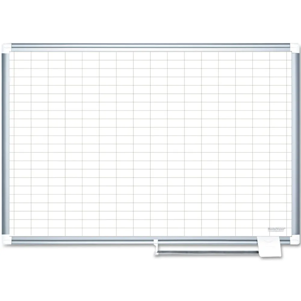 MasterVision MA0592830 48 in. x 36 in. 1 in. x 2 in. Cells Gridded Magnetic Steel Dry Erase Project Planning Board – White Surface/Satin Aluminum Frame
