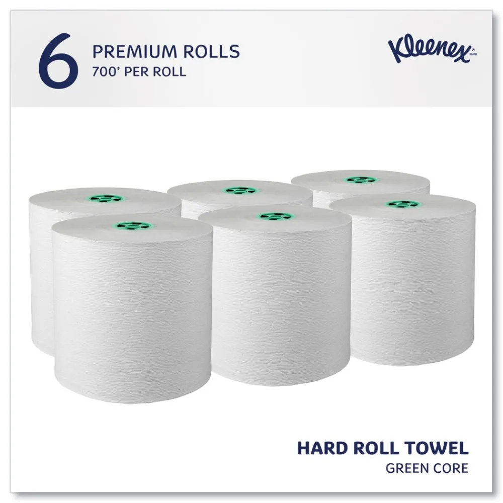 Kleenex 25630 7.5 in. x 700 ft. Hard Roll Paper Towels with Green Core – White (6/Carton)