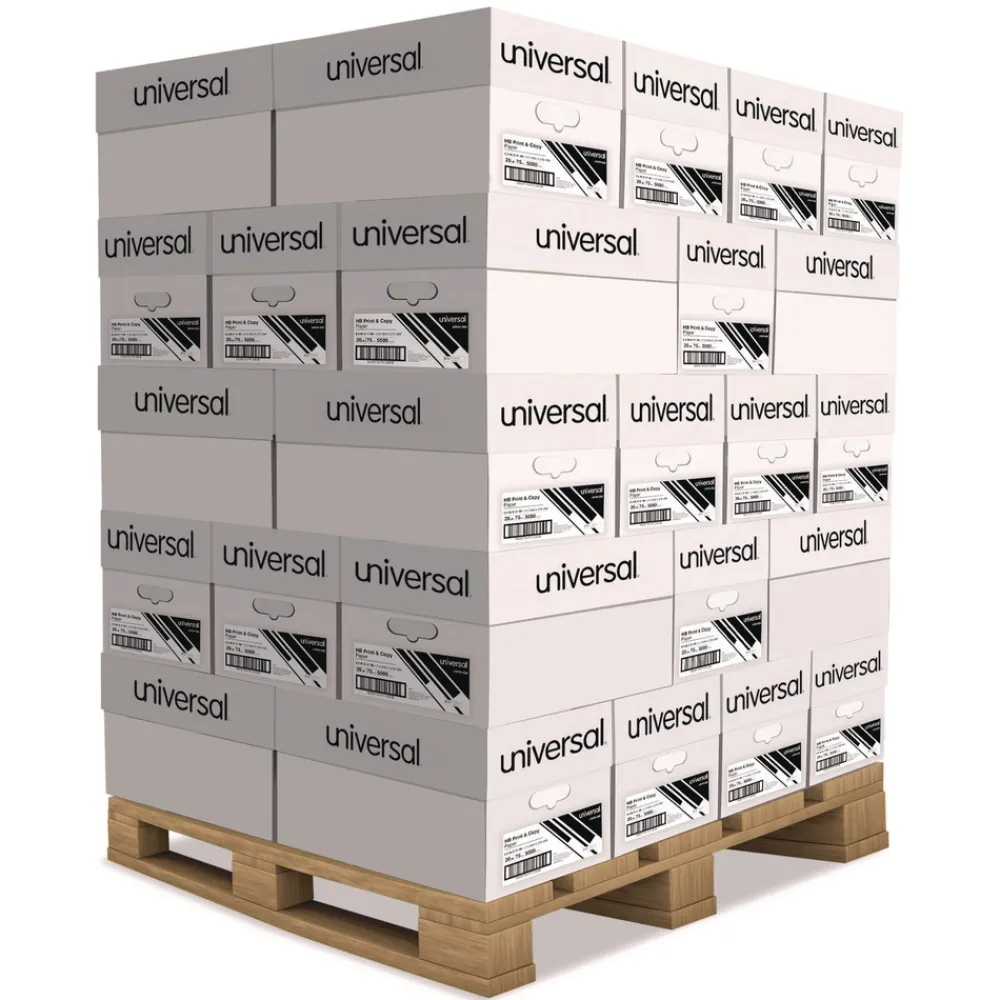 Universal UNV91200PLT 8.5 in. x 11 in. 20 lbs. Bond Weight High-Bright Multipurpose Paper – White (1-Pallet)