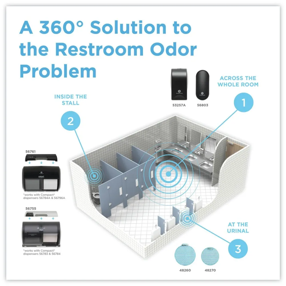 The GP PRO ActiveAire product line is a 360ş approach to battle odor, the second most frequent restroom complaint. Try the Award-Winning motion activated ActiveAire Freshener Dispenser for Compact, one of our ActiveAire Whole-Room Freshener Dispensers and our ActiveAire Deodorizer Urinal Screens. With a range of matching clean, fresh scents available across the entire product line you can be confident your restrooms will provide a consistent and more welcoming experience for everyone. GP PRO is a division of Georgia-Pacific Consumer Products. We deliver well-designed, durable and easy-to-maintain professional solutions to meet the handwashing and cleaning needs for a range of business applications.