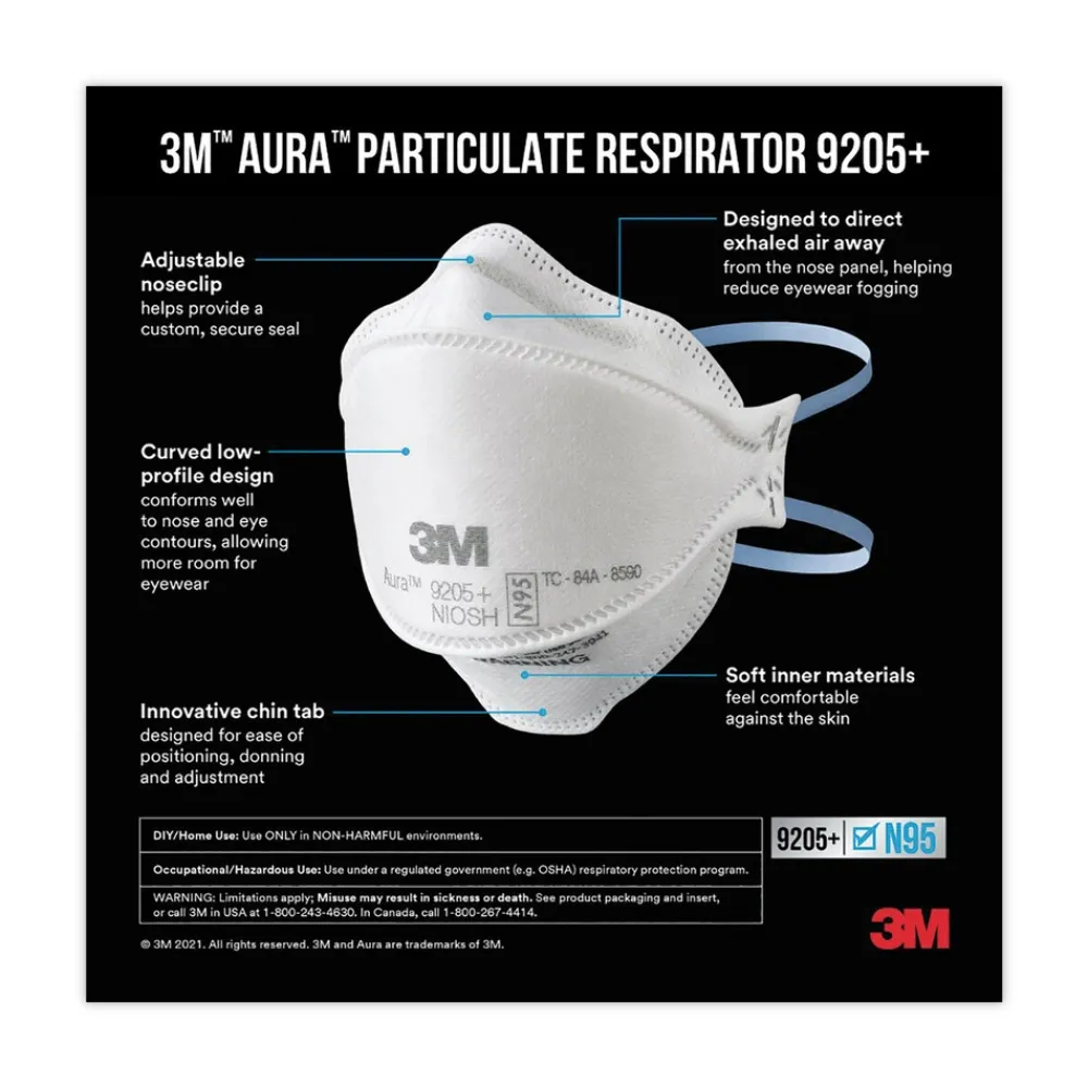 3M 9205PH-20-DC Aura 9205 Plus N95 Particulate Respirator – One Size Fits All (20/Pack)