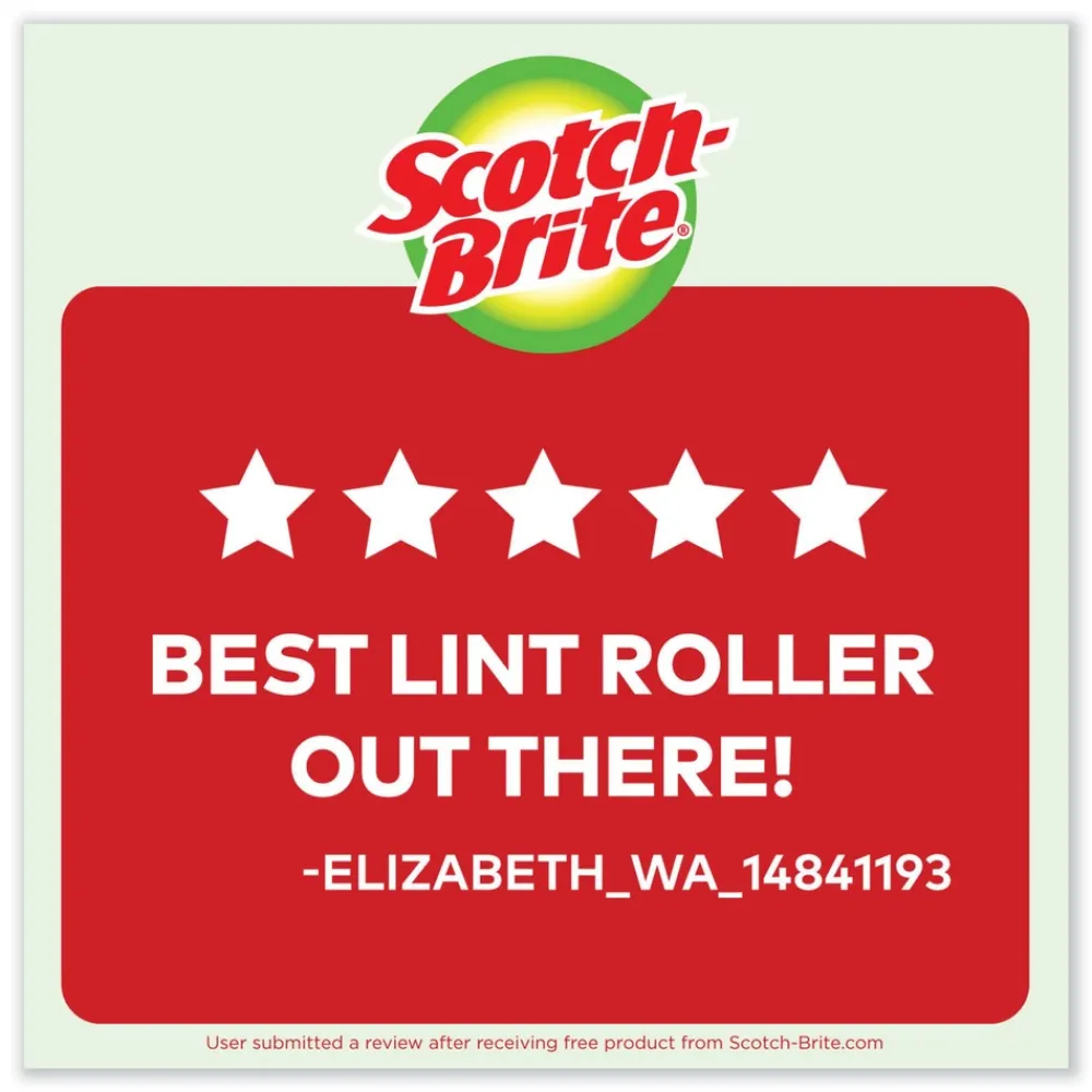 Exclusive Scotch film backed adhesive. Remove lint, pet hair, dust and more from clothing with smooth rolling action. Exclusive coreless roll for less waste.