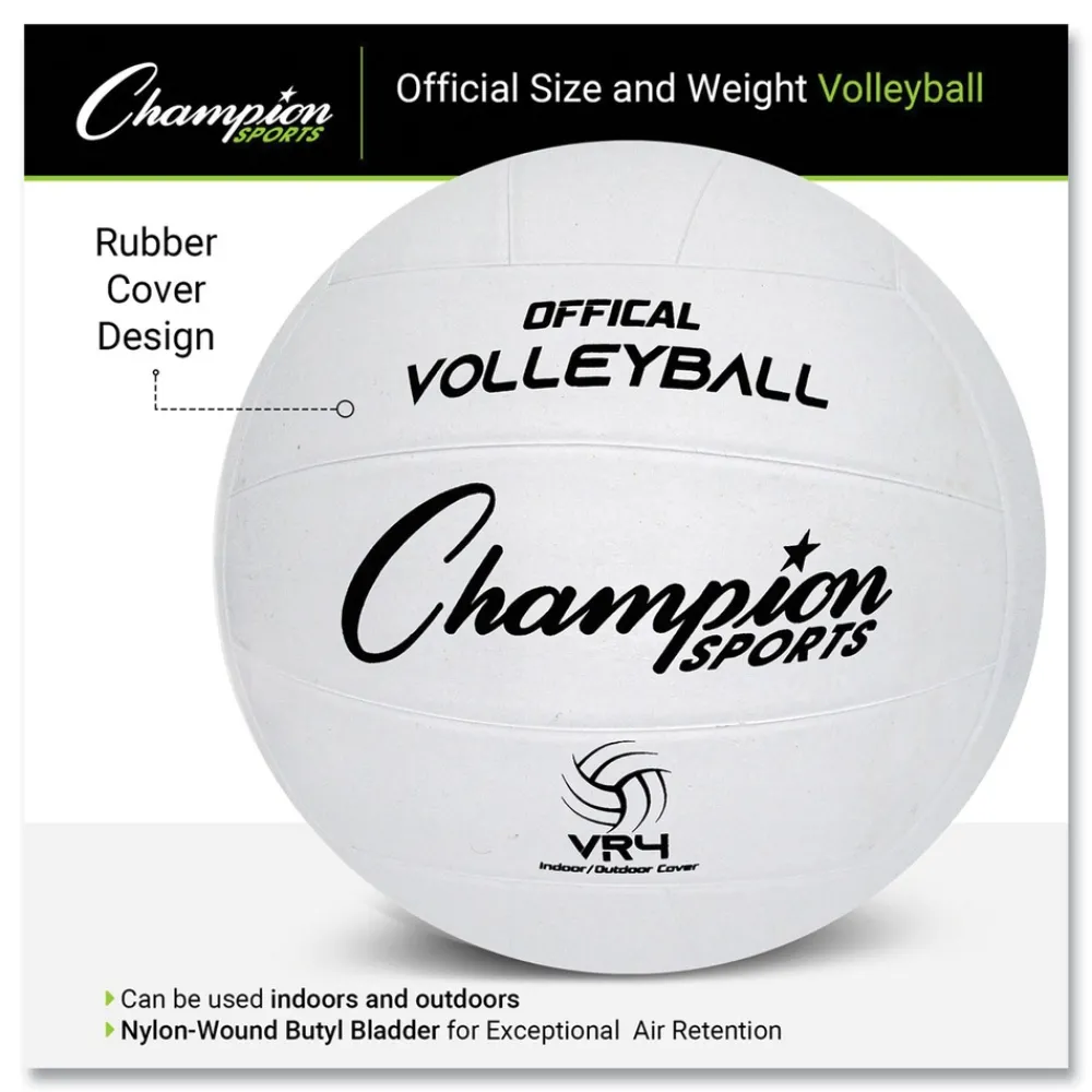 Champion Sports VR4 Official Size Rubber Volleyball – White