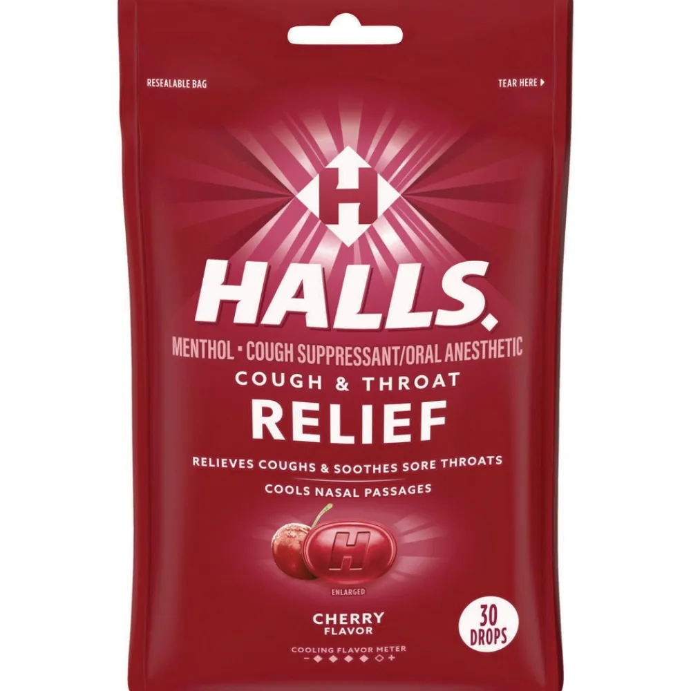 HALLS 03 12546 62182 00 Triple Action Cough Drops – Cherry (30/Bag, 12 Bags/Box)
