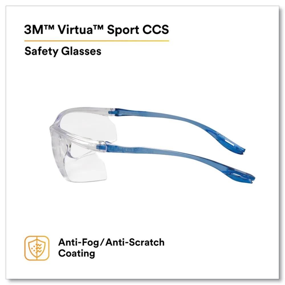 3M 11796-00000-20 Virtua Plastic Frame Polycarbonate Lens Sport CCS Protective Eyewear – Blue Frame/Clear Lens