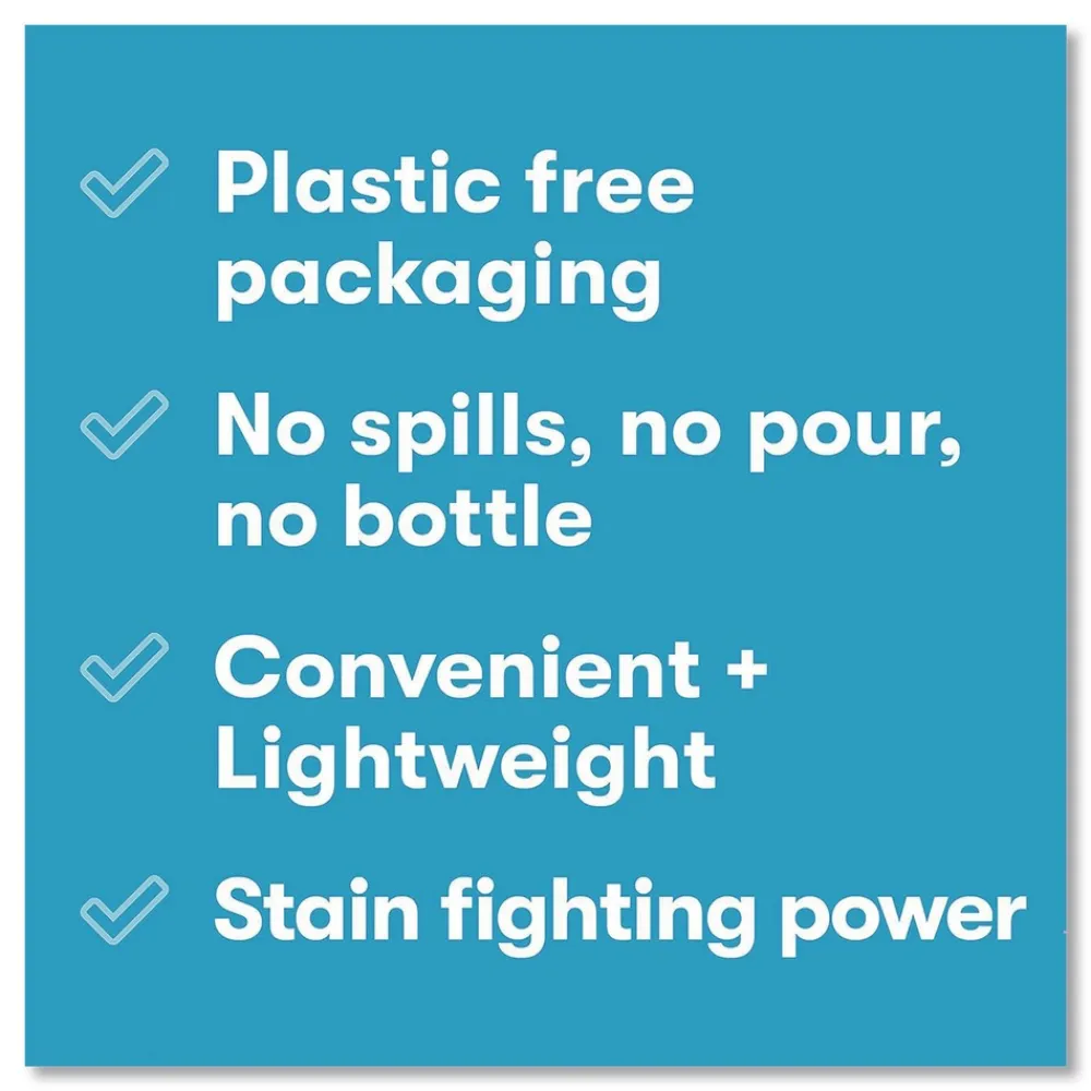 A solid new way to do your laundry. Designed for both homes and businesses, these ECOS liquidless laundry detergent sheets offer a plastic-free, lightweight, mess-free alternative that makes sustainable living a breeze. Our laundry detergent fights tough stains and odors with plant-powered cleaners and enzymes packed into every sheet. Say goodbye to sticky spills and hoisting heavy jugs, and elevate your laundry experience with ECOS the sustainable, convenient, and highly effective solution you’ve been searching for! 100% plastic free packaging reduces plastic waste, contributing to a sustainable future for both homes and businesses. Not tested on animals.