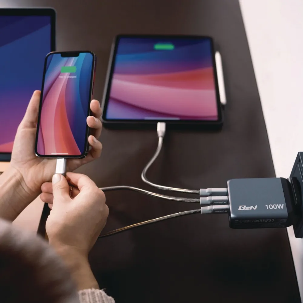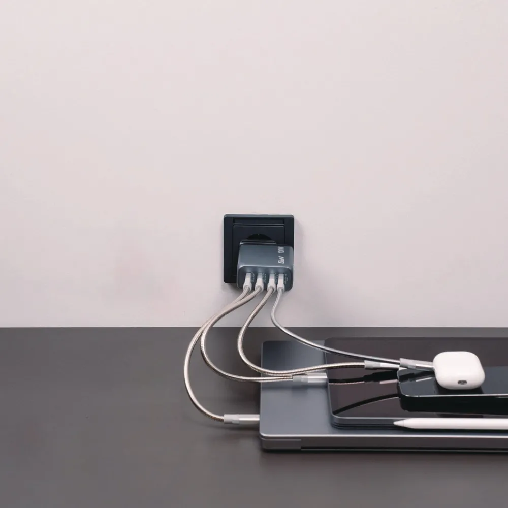 Supports charging of up to four devices simultaneously with a maximum total output of 100 W.