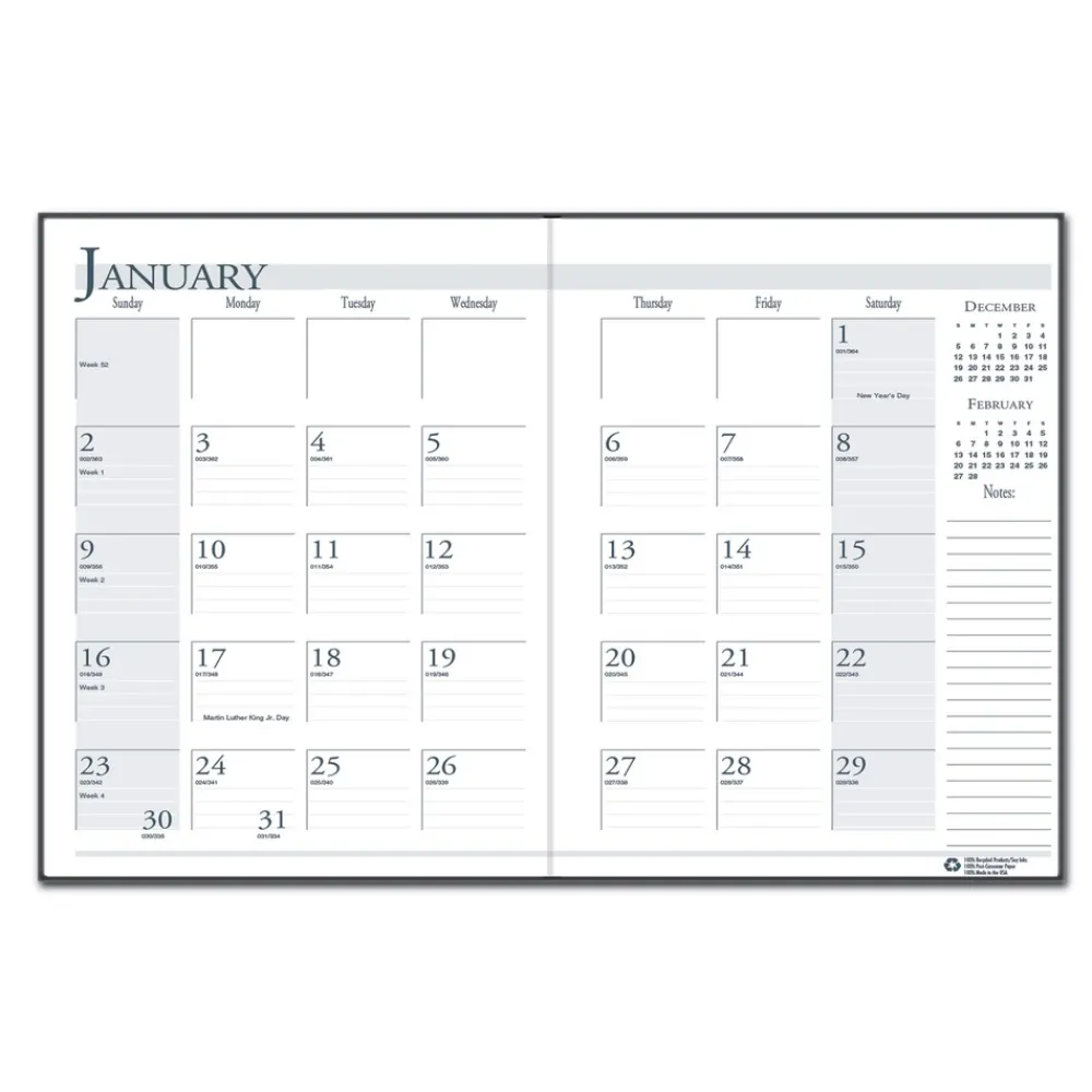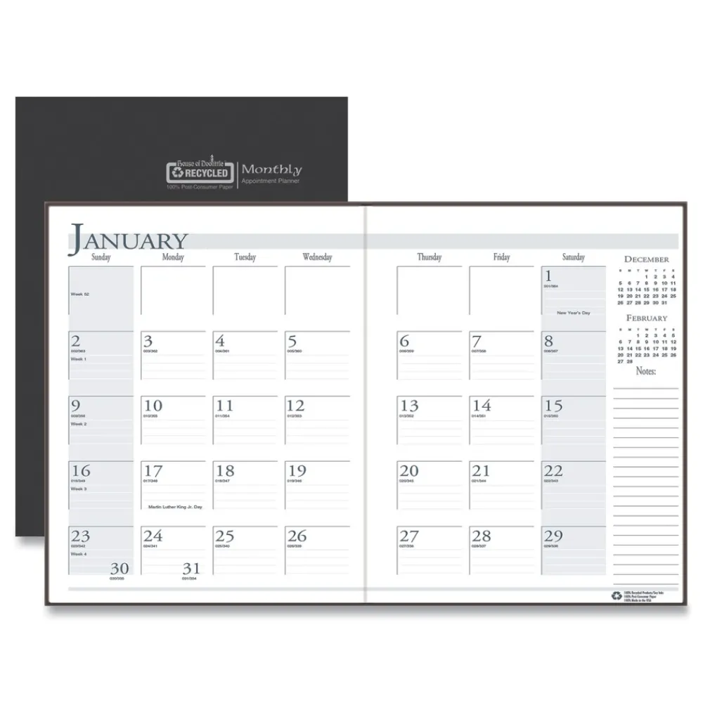 House of Doolittle 260-02 11 in. x 8.5 in. 14-Month (Dec 2025-Jan 2027) Recycled Ruled Planner with Leatherette Cover – Black Cover