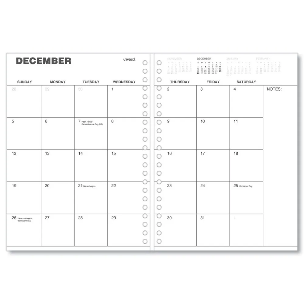 Universal 71001 11 in. x 8 in. 14-Month (Dec 2025-Jan 2027) Monthly Planner – Black Cover
