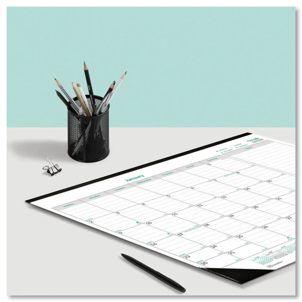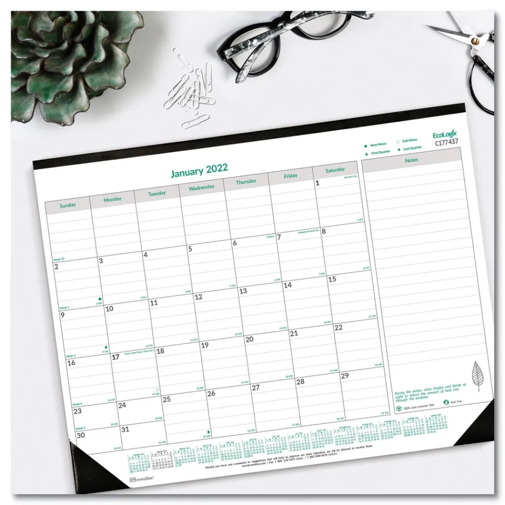 12-Month (Jan-Dec): 2026 22 in. x 17 in. EcoLogix Artwork Monthly Desk Pad Calendar – White/Green Sheets, Black Binding/Corners – C177437