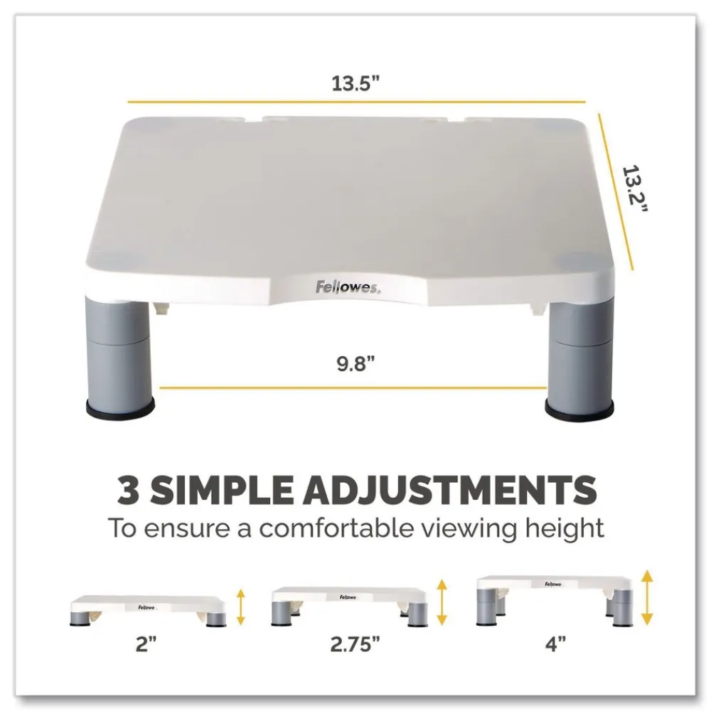 New 13.38 in. x 13.63 in. x 2 in. to 4 in. 60 lbs. Standard Monitor Riser for 21 in. Monitors – Platinum/Graphite Office Furniture & Lighting