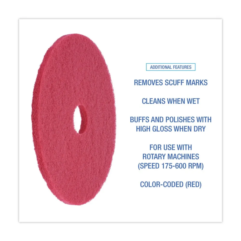 Boardwalk BWK4019RED 19 in. Diameter Buffing Floor Pads – Red (5/Carton)